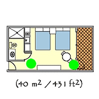 The Inca is the closest Tower to the Beach and Ocean, this is typical Studio room. These picture were taken of a 5th floor Studio. The first digit of the number indicating the floor level.. Access to the Inca Studios is left off the elevator or stairs. These suites are maintained daily by the excellent Inn’s staff. There is free WIFI Internet in each room.